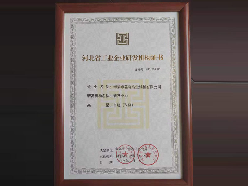 河北省工業(yè)企業(yè)研發(fā)機(jī)構(gòu)證書(shū)